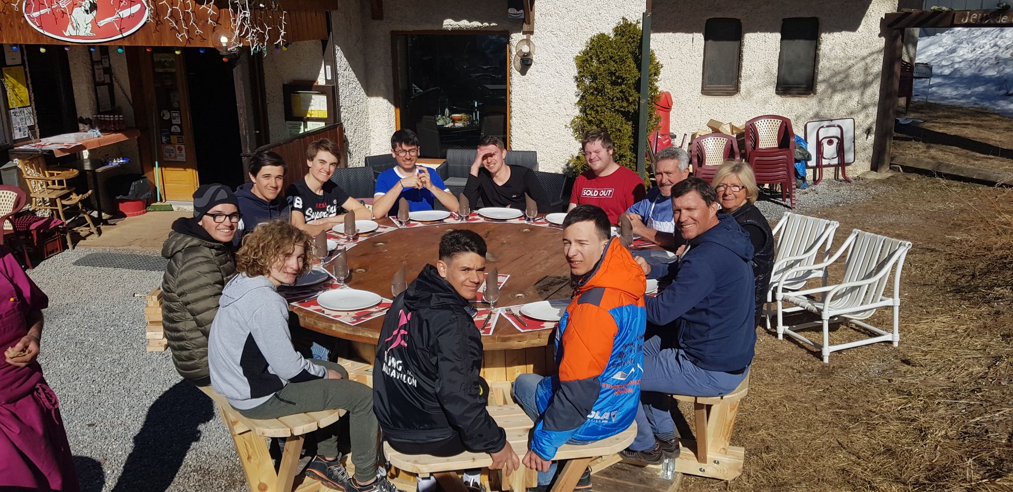 A partir du touret du câble du nouveau télésiège de Pic-Vert, une immense table ronde avec 12 assises intégrées, a été imaginée, conçue puis construite. Bravo à tous pour cette réalisation !