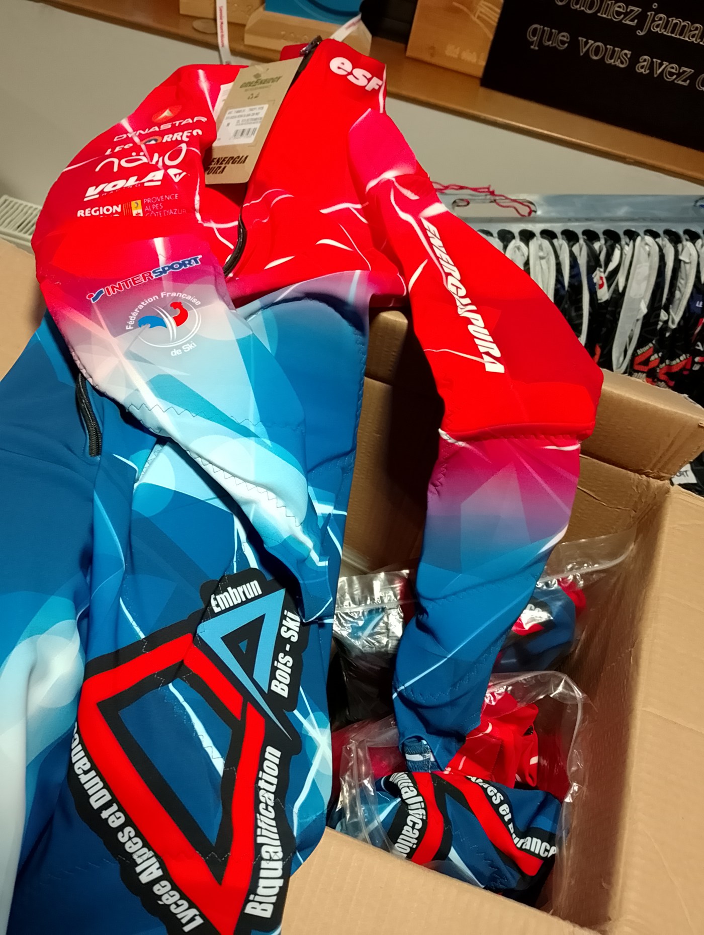 Merci à nos partenaires VOLA et ENERGIAPURA pour ce bel outil technique : une combi GS racing aux couleurs du LAD 🙂 !